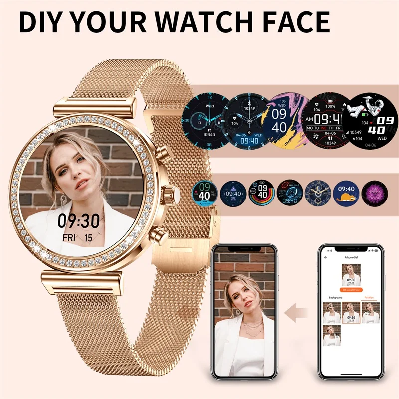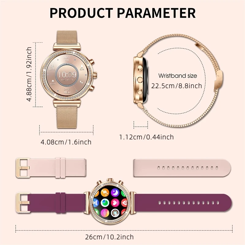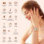 Track your health in style with this sleek fitness smartwatch, designed for active women. Monitor heart rate, blood oxygen, sleep, and blood pressure while staying connected with call and message reminders. It tracks your steps, distance, and calories, helping you stay on top of your fitness goals every day.